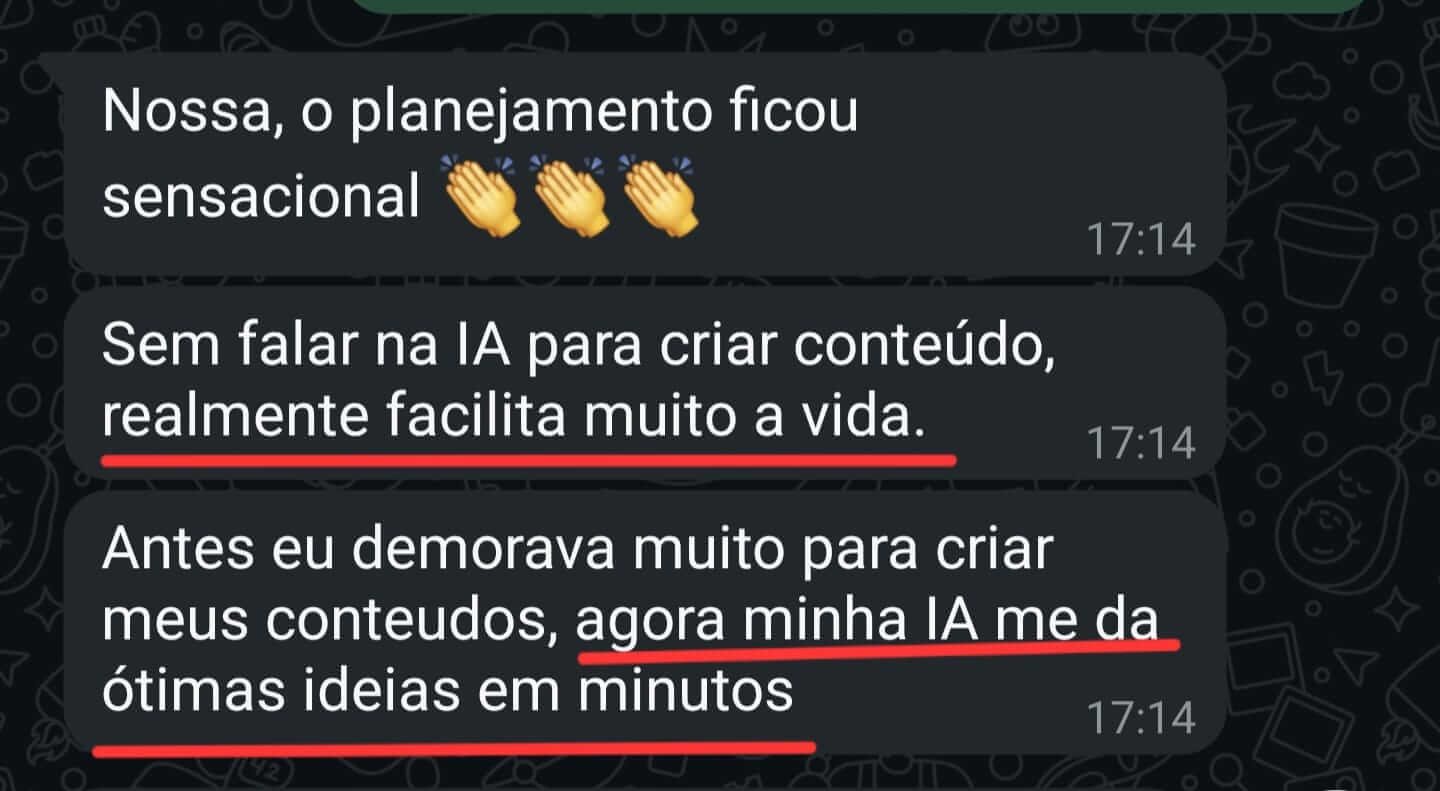 Diferente do ChatGPT comum, seu assistente é treinado com as informações do seu Planejamento. Ele entende sua linguagem, seus produtos, seu público e seu posicionamento — e responde com base no estudo que fazemos.